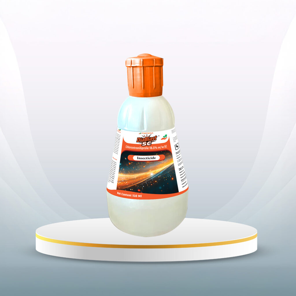 DiaBlast SC™ is an Antranilic Diamide based broad spectrum insecticide that provides immediate, and long-lasting control of target Insects. It is a broad-spectrum insecticide with contact and stomach action, effective against Larval pests of crops- Rice, Cotton, Maize, Sugarcane, Tomato, Chilli, Groundnut, Okra, Bengal Gram, Pigeonpea, Cabbage, Brinjal, Soybean, Bitterguard, Black gram, Green Gram.